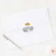 Adesivo personalizado de 50º aniversário de casamento com um casal de elefantes ilustrados segurando balões.