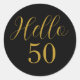 Elegante preto e dourado, design de adesivo de 50 anos. Esta design de tipografia moderna está em preto-e-branco e ouro. Ele tem o texto "Hello 50" em tipografia de tendências. Esta design de na moda é perfeita para uma inesquecível celebração da 50ª festa de aniversário. Se precisar de ajuda para personalização ou para um projeto personalizado, entre em contato comigo por meio de bate-papo zazzle ou email: ursuladawnmoon@gmail.com