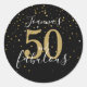 Adesivo Redondo 50 e Fabuloso Aniversário de 50 anos Dourado Preto