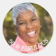 Elegante, clássico, 50 (ou qualquer idade) e fabuloso adesivo de aniversário. Personalize e adicione uma foto. Texto 50 e fabuloso. Texto branco.