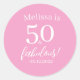 Adesivo Redondo 50 Festa de aniversário rosa fabulosa 50ª personal