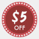 Adesivo Redondo 5 Dólares OFF Sales Discount Red Sticker