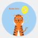 Adesivo Redondo 5 tigre de aniversário adicione nome azul laranja