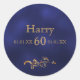 Adesivo Redondo 60º aniversário elegante azul escuro e ouro