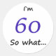 Um adesivo para alguém que comemora 60 anos. Vem com uma citação engraçada que tenho 60 e assim, e é perfeito para uma pessoa com senso de humor.