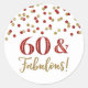 60 e fabulosos adesivos de etiqueta de festa de aniversário com ouro e confete vermelho.
