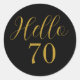Elegante design de 70 de aniversário preto e ouro. Esta design de tipografia moderna está em preto-e-branco e ouro. Ele tem o texto "Hello 70" em tipografia de tendências. Esta design de na moda é perfeita para uma inesquecível celebração da festa de aniversário. Se você precisar de ajuda com a personalização, produtos correspondentes ou para um projeto personalizado, entre em contato comigo via chat zazzle ou email: ursuladawnmoon@gmail.com