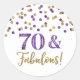 Adesivo Redondo 70 e Fabuloso Aniversário, Dourado Confetti Roxo