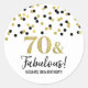 70 e fabulosos adesivos de etiquetas favoritos à festa de aniversário com dourado e confete preto.