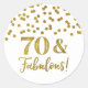 70 e fabulosos adesivos de etiquetas favoritos à festa de aniversário com um confete dourado.