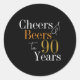 Adesivo Redondo 90 Birthday Cheers and Beers Black Dourada Party