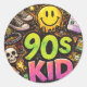 Adesivo Redondo 90s Kids Grunge Seamless Pattern: Pizza, Skeletons