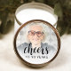 This custom 90th birthday sticker features the guest of honor's personalized photo and birthday, along with the word "Cheers" in elegant black calligraphy script. A white screen helps make the text pop. A great way to celebrate someone who's turning ninety!