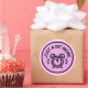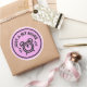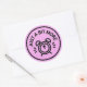 This image is a circular badge design set against a solid light pink background with a thick black border.