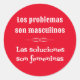 Pode ser difícil lembrar o gênero de alguns substantivos em espanhol, mas aqui está um adesivo divertido para ajudar nisso. Há um ditado popular: "Los problemas filho maculinos Las soluciones, filho fede". Isso se traduz como "Problemas são masculinos, Soluções são femininas". Uma ideia excelente para um professor adicionar ao trabalho dos alunos para lembrá-los, este adesivo tem um texto branco sobre um fundo vermelho brilhante.