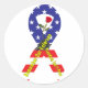 Uma fita no estilo Stars and Stripes com uma rosa, a ascensão da bandeira Iwo Jima, e as mensagens de "Lembre-se de nossos veteranos" e "Liberdade não é livre" para honrar e lembrar de nossos veteranos.