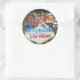 Os adesivos finais de Las Vegas ou festa de solteira são divertidos de selar os envelopes nos seus convites. Ou usar como decoração em xícaras, garrafas de bebidas e sacos de presentes. Esta versão personalizada do famoso sinal de boas-vindas de Las Vegas no The Strip tem uma foto aérea das luzes do cassino neon de Las Vegas Boulevard à noite no fundo.