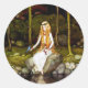 Linda ilustração de John Bauer de uma bela princesa com cabelos louro longos e fluentes, sentados em uma rocha à beira de um lago na floresta, com um pássaro azul estrelado sobre sua mão. Da história, "A Princesa na Floresta".