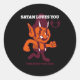 Design engraçado com o diabo retrorreflector agudo e a legenda "A Satã ama você por quem você é". Um presente para Dia de os namorados.