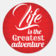 Uma citação de caligrafia positiva definida contra um fundo de gradiente radial vermelho. A vida é a maior aventura é uma excelente ideia de presente para qualquer um que tenha uma atitude otimista.