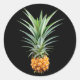 Adesivo Redondo Abacaxi com cabelo grande sobre fundo preto