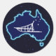 Uma simples silhueta branca de um trenó de cão e a Cruz do Sul sobrepuseram-se a um mapa azul da Austrália. Tudo num fundo estelar. Quem teria mordido? Mudando de cabeça para baixo em Oz. O trenó de cachorro é bastante popular na Austrália. No Monte Hotham em Victoria há uma grande corrida todos os anos.