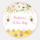 Adesivo Redondo Abelha Dourada rosa, Aniversário Floral