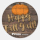 Adesivo Redondo Abóbora de Madeira Rústica Feliz Outono Para Todos