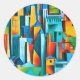 Edifícios de abstrato Cityscape Arranha-céus Pintura digital adesivo redondo