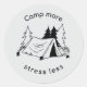 Adicione um toque de aventura aos seus itens do dia a dia com este adesivo redondo clássico "Camp More Stress Less". Perfeito para os campistas, amantes do exterior, e para quem gosta da natureza, este autocolante é um simples lembrete para relaxar e desfrutar das pequenas viagens da vida.