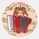 Música de acordeão, design de Natal popular, acordeão vermelho em partituras. Feliz Natal!