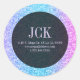 Brilho colorido legante de rosa a azul a roxo com círculo central preto para texto personalizável.