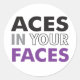 Mostre o seu orgulho desportivo com este autocolante com o slogan "Aces In Your Faces" nas cores da bandeira ace. Todos os lucros das vendas deste adesivo vão para o grupo de encontro New England Aces, um grupo de apoio para pessoas assexuadas de espectro em Boston, e seus eventos para a AAW este ano. Consulte meetup.com/newenglandaces para obter mais informações sobre o grupo.