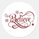 Adesivo Redondo Acredite em flocos de neve vermelhos estende feria