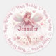 Adesivo Redondo Adicionar Nome Fada e Flores
