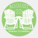 Casamento moderno do tema da praia com cadeiras de adirondack em branco. Personalize com nomes de casais e data especial. Alterar a cor de fundo como preferido.