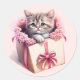 Adesivo Redondo Adorável Kitten em uma Caixa Aniversário Presente
