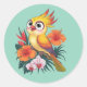 Adesivo Redondo Adorável Pássaros Amarelos com flores