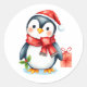 Adesivo Redondo Adorável Pinguim de Natal Festivo