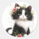 Adesivo Redondo Adorável Tuxedo Kitten com Flores