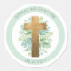 Cruz dourada elegante com adesivo de folhagem ideal para qualquer evento religioso. Ótima para lembrancinhas de festa ou como selo de envelope. Disponível em dois tamanhos diferentes. Folhas de folhagem em aquarela em uma mistura de tons de verde menta claro e menta turquesa azul. Design unissex adequado para meninos e meninas. Círculo externo em tom de menta verde claro. Produtos de convite e eventos coordenados disponíveis. Parte da nossa coleção "Eventos Religiosos Unisex Elegantes com Folhagem".