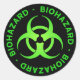 Risco biológico - adesivo preto com inscrição verde e símbolo de risco biológico.