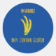 Este belo adesivo tem uma fotografia de trigo sobre um fundo azul profundo. A mensagem é "Aviso! Pode conter glúten". Aproveite seu novo aviso pode conter gluten Classic Round Sticker!