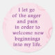 Deixo de lado a raiva e a dor para acolher novos começos na minha vida. Encontre mais afirmações positivas e inspiração em www.MyDreamsMatter.com