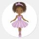 Este adesivo redondo africano americano de bailarina é de cor púrpura clara e escura. O adesivo é desenhado com um belo encaracolado a partir de bailarina.