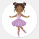 Este adesivo redondo africano americano de bailarina é de cor púrpura clara e escura. O adesivo foi desenhado com uma linda moça de bailarina africana-americana.