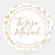 Diga obrigado aos seus convidados com adesivos personalizáveis. Edite facilmente o modelo com seus detalhes. Corações românticos impressos em folha de ouro com você, obrigado nota, nomes e data do casamento. Casamento Obrigado Clássico Vinheta Redonda