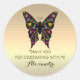 Elegante, único, sofisticado, adorável borboleta preta com ornamentos florais coloridos mexicanos em combinação com um fundo de folha de ouro glamoroso e luxuoso. Adesivo de agradecimento chic, moderno e caprichoso. Escolha perfeita para celebração de Quinceanera.