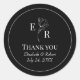 Expresse gratidão de forma elegante com nosso Agradecimento de Casamento com Monograma Floral Preto Adesivo Redondo Clássico. Contra um fundo preto elegante, o delicado design de monograma floral branco adiciona um toque de sofisticação aos seus tokens de agradecimento. Perfeito para selar envelopes ou adornar presentes, esses adesivos oferecem uma maneira elegante e graciosa de transmitir seus agradecimentos.
