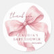 Adicione um toque de elegância romântica às lembrancinhas do chá de bebê com esses adesivos de laço pintados à mão em aquarela. Com uma fita clássica e volumosa em um tom rosa suave, esses rótulos capturam a estética popular de coquette com um toque sofisticado. As texturas delicadas da aquarela e as pontas da fita enrolada criam um visual artístico e sofisticado que é perfeito para celebrar a chegada da sua menina.
